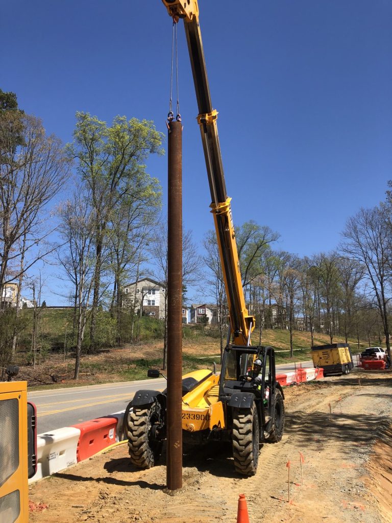Taproot Construction was engaged to install a temporary earth retention system to facilitate construction of a cast-in-place concrete retaining wall at the Centene campus in Charlotte, North Carolina. The wall was located adjacent to an active roadway, which needed to remain open throughout construction. Due to limited space and the inability to lay back the excavation, a vertical support solution was required to allow safe installation of the retaining wall footing.