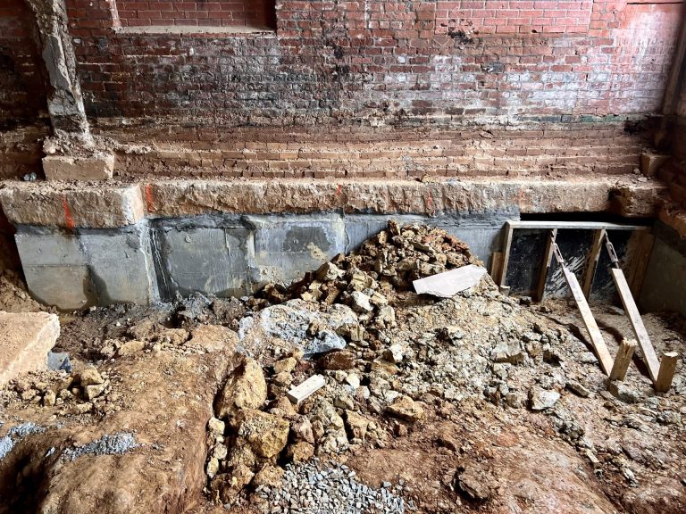 Our underpinning work was essential to transferring foundation loads from deteriorating masonry onto a new support system while maintaining the structural integrity of the building throughout construction. Segmental underpinning was installed from within the existing structure where limited overhead clearance and tight spaces presented significant challenges. The segmental system provided a low-vibration solution ideally suited for fragile masonry, allowing us to minimize disruption to the surrounding structures.